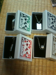 で、最後にアクセですね。緋色各キャラのイメージアクセなんですが、超ツボ!マジでやっばいです!真弘っぽいヤツは皮ベルトっぽくて痕をつけたくねぇ…!って思ってしまいます。でもかっこいいからつけたい。祐一君モチーフのヤツは見るからにかっこよすぎてやばい!遠目でサンプルを見て薄そうに見えて、でも模様がかっこいいから買ってしまったんですが、ホンモノはすごかった!理想ぐらいの厚さで陰影で暗いのが更にかっこよくて。バイトない日につけて出かけようと誓いました。さすが祐一君です、かこいいです。