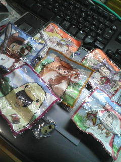 中身はファスナーアクセサリーとフルカラーコースター。全8種、予想としては守護者+リボーン。内、狙うは雲雀さん!!!(あわよくば骸さんと山本くん) いざ、純情に勝負!!!